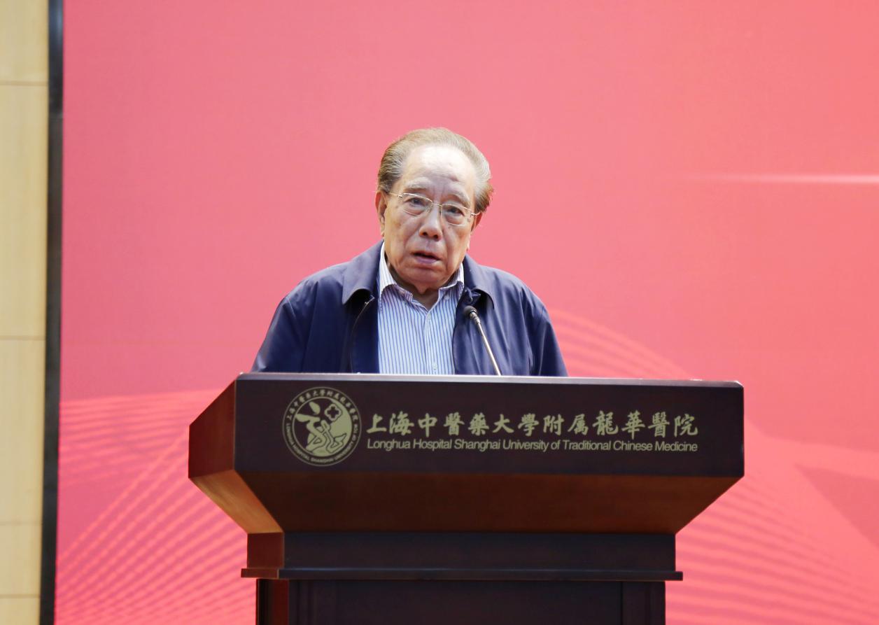 工作室导师严世芸教授讲话。严世芸教授回顾了龙华医院发展的历程和新时期面临的新机遇,对医院新阶段医、教、研的发展寄予殷切期许。同时,对工作室的成员也提出谆谆教导,鼓励学生们坚持中医特色,夯实中医基础,加强中医经典学习,促进临床回归经典,辨病辨证相结合,不断提高临床水平,以高水平的临床能力助力临床教育教学能力的提升。
