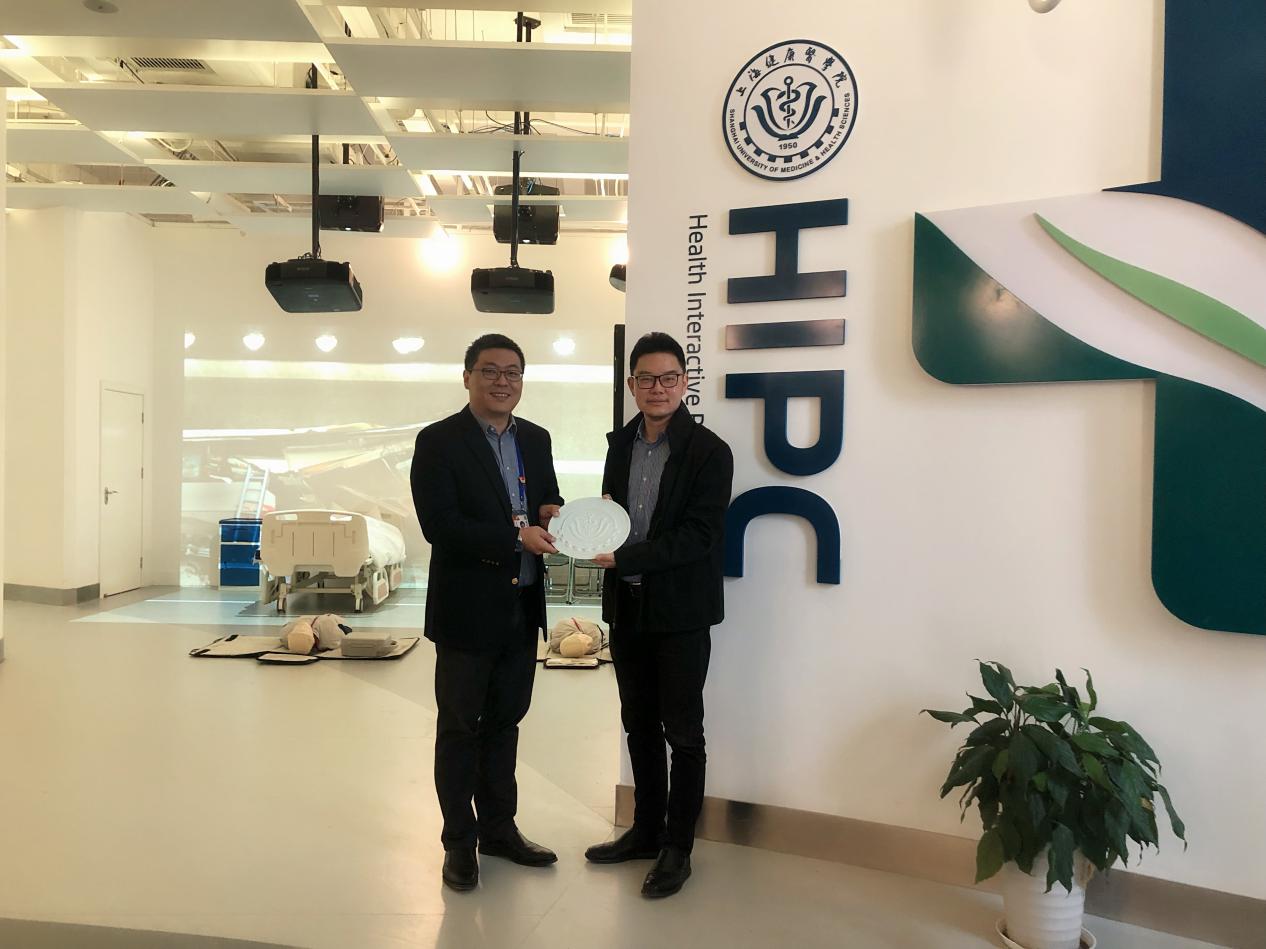 双方就医学生实践实训教育的内涵建设、产教融合、教学资源共享等各方面展开深度探讨,将充分发挥各自优势,进一步拓展实践教学合作领域,深化合作层次,共同促进教学实践平台建设。会后张浩陪同参观了健康互动实践中心,介绍了各类临床实训实践项目和相关课程。