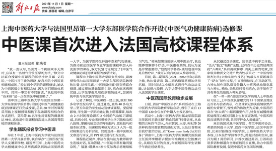 解放日报:bat365中文官方网站与法国里昂第一大学东部医学院合作开设《中医气功健康防病》选修课中医课首次进入法国高校课程体系