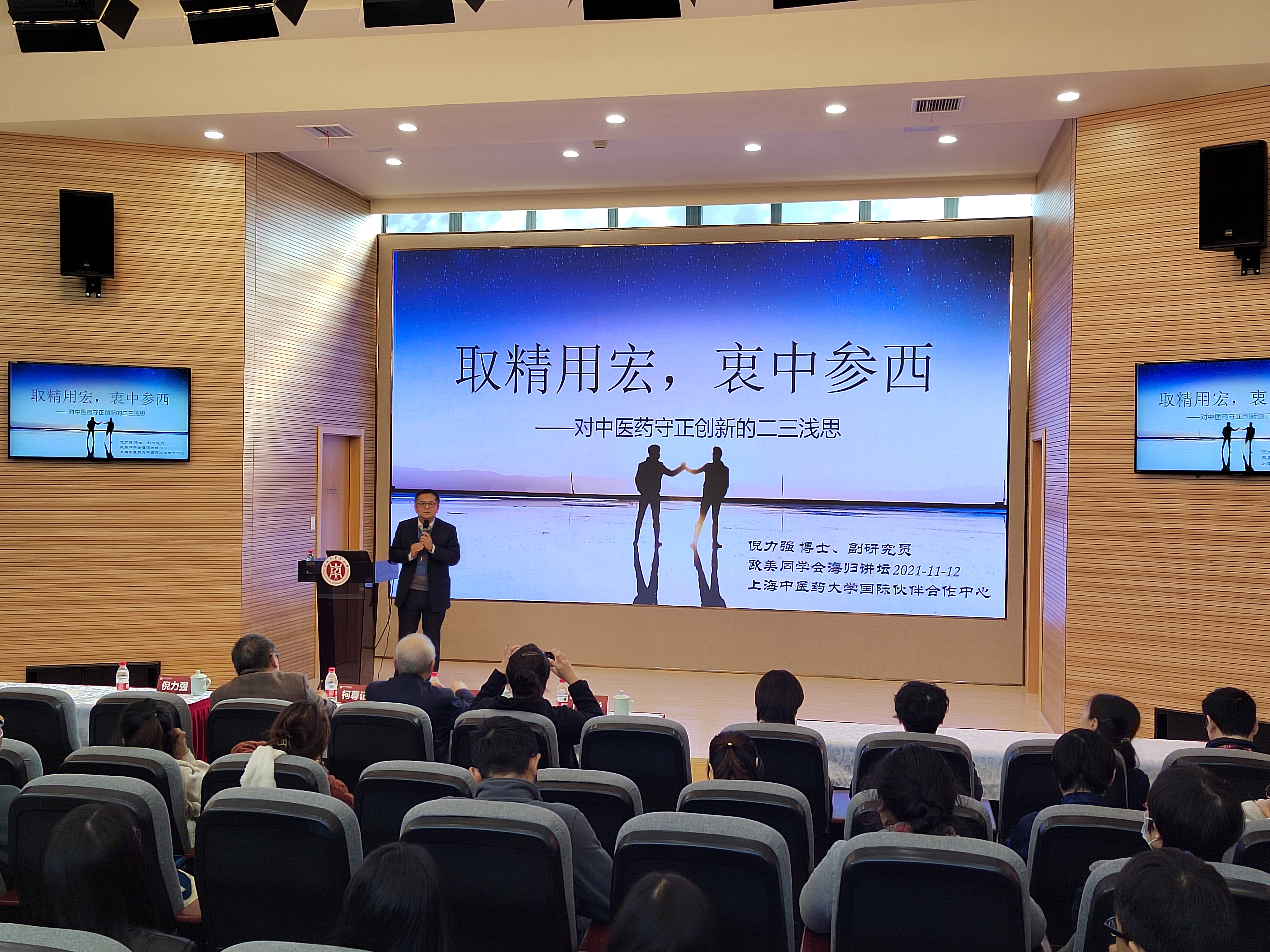11月12日下午,由bat365官网统战部、欧美同学会、科技处、基础医学院联合主办的“海归讲堂”在全球合作伙伴中心一楼报告厅举办。校欧美同学会会长刘平、统战部副部长严月华出席。校欧美同学会副会长、基础医学院院长吕嵘主持讲堂。校图书馆常务副馆长、上海中医药杂志社社长倪力强,bat365中文官方网站中西医结合研究院研究员柯尊记作讲座。
