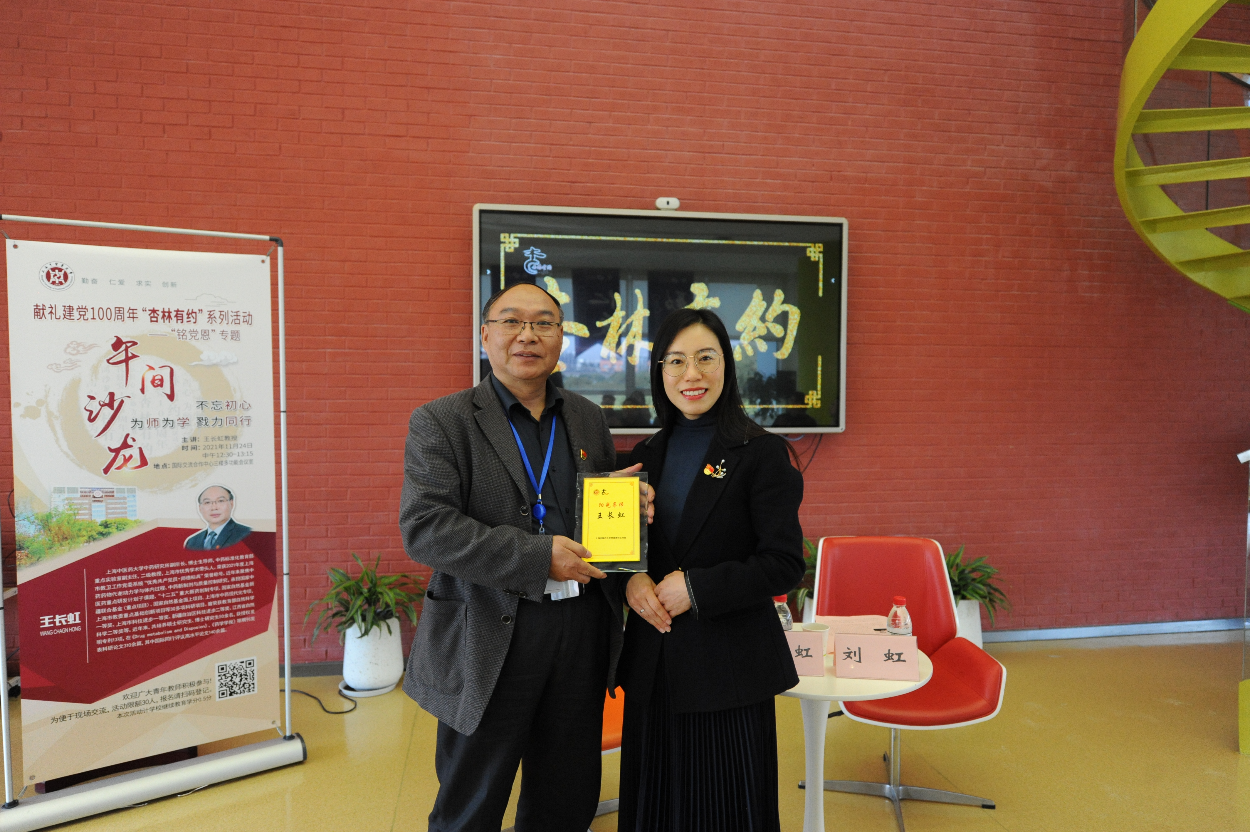 11月24日中午,bat365官网献礼建党100周年“杏林有约”系列活动之“铭党恩”专题午间沙龙在国际交流合作中心三楼多功能厅举行。bat365官网中药研究所副所长王长虹教授受邀和青年教师们分享“为人为师为学”的体会和感悟。活动由校党委教师工作部副部长刘虹主持。