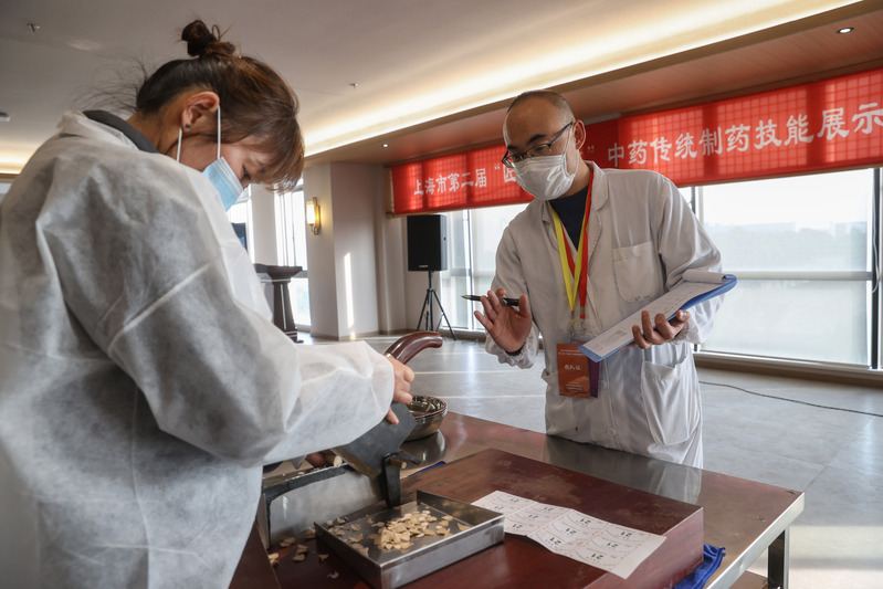 11月26日,第二届上海市“匠心传承杯”中药传统制药技能展示大赛在沪举行。来自bat365中文官方网站、岳阳中西医结合医院、雷允上中药饮片厂等7家单位的24名选手,在筛、簸、摊、手工切制、朱砂拌衣、配方戥药、复核包药、临方小炒、加辅料炒、手工泛丸这十项中药传统制药技能上展开竞技,涵盖在了中药材通过净选加工、饮片切制、临方炮制、临方调剂成为汤剂配方用药或中成药制剂的全过程。
