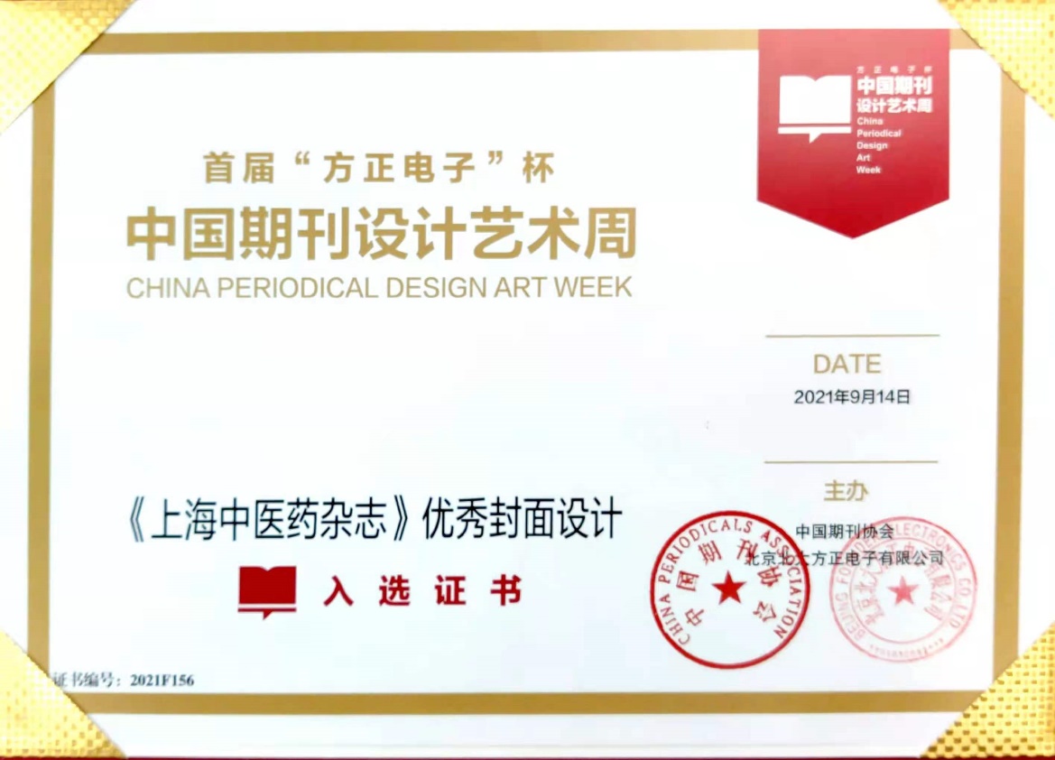 为开展期刊装帧设计的交流,推动期刊出版“做强内容、做好传播、做优服务、做美产品、做大产业”,引领我国期刊高质量发展,中国期刊协会与北京北大方正电子有限公司,在2021年北京国际图书博览会(BIBF)期间,开展首届“方正电子”杯中国期刊设计艺术周活动。经过专家遴选,bat365官网主办的期刊《上海中医药杂志》从众多优秀期刊中脱颖而出,获优秀封面设计奖。