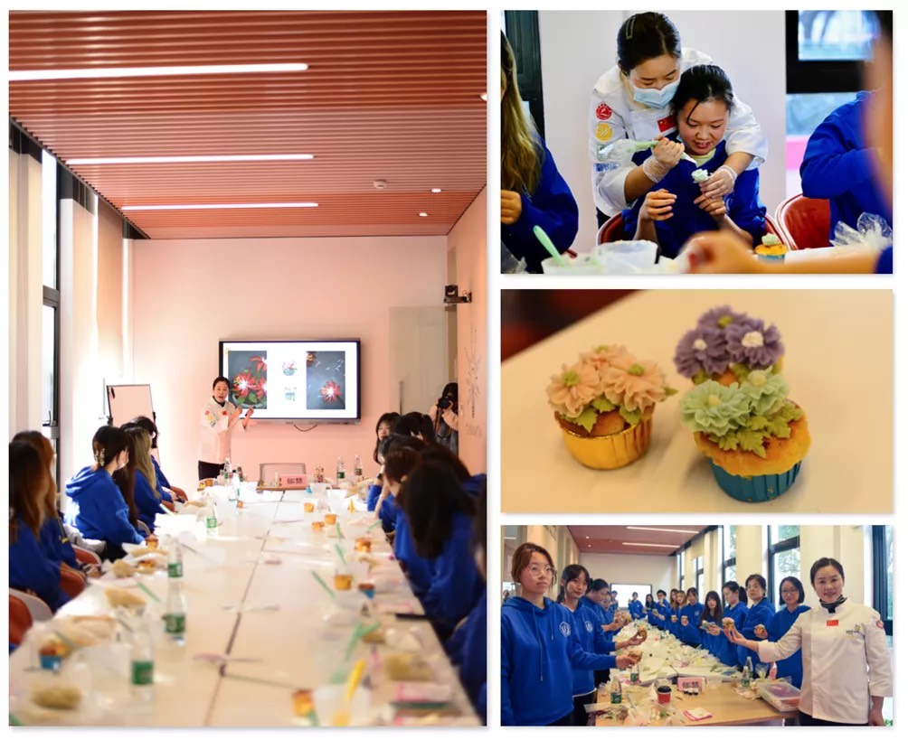 与此同时,上海糖师师培训学校有限公司技术总监、校长、世界技能大赛西点糖艺裁判教练、上海工匠郁慧带领同学们领略裱花的艺术,在线条的曲折盘旋、褶皱的凹凸痕迹中感受劳动的礼赠。通过观察与实践,感受工匠前辈在工作中的专注与创新,在劳动中体悟坚持不懈的毅力与精神。学校公共健康学院2020级食品卫生与营养学的文嘉玲起初认为,裱花很简单,上手之后才知其背后的不易,她感叹道:“这次学习体验让我深受触动,劳动教育让我们走出课本,今后我们在医学路上也要践行匠心精神,培养自己不惧劳累的精神和坚持不懈的毅力,不断向劳模靠近!”
