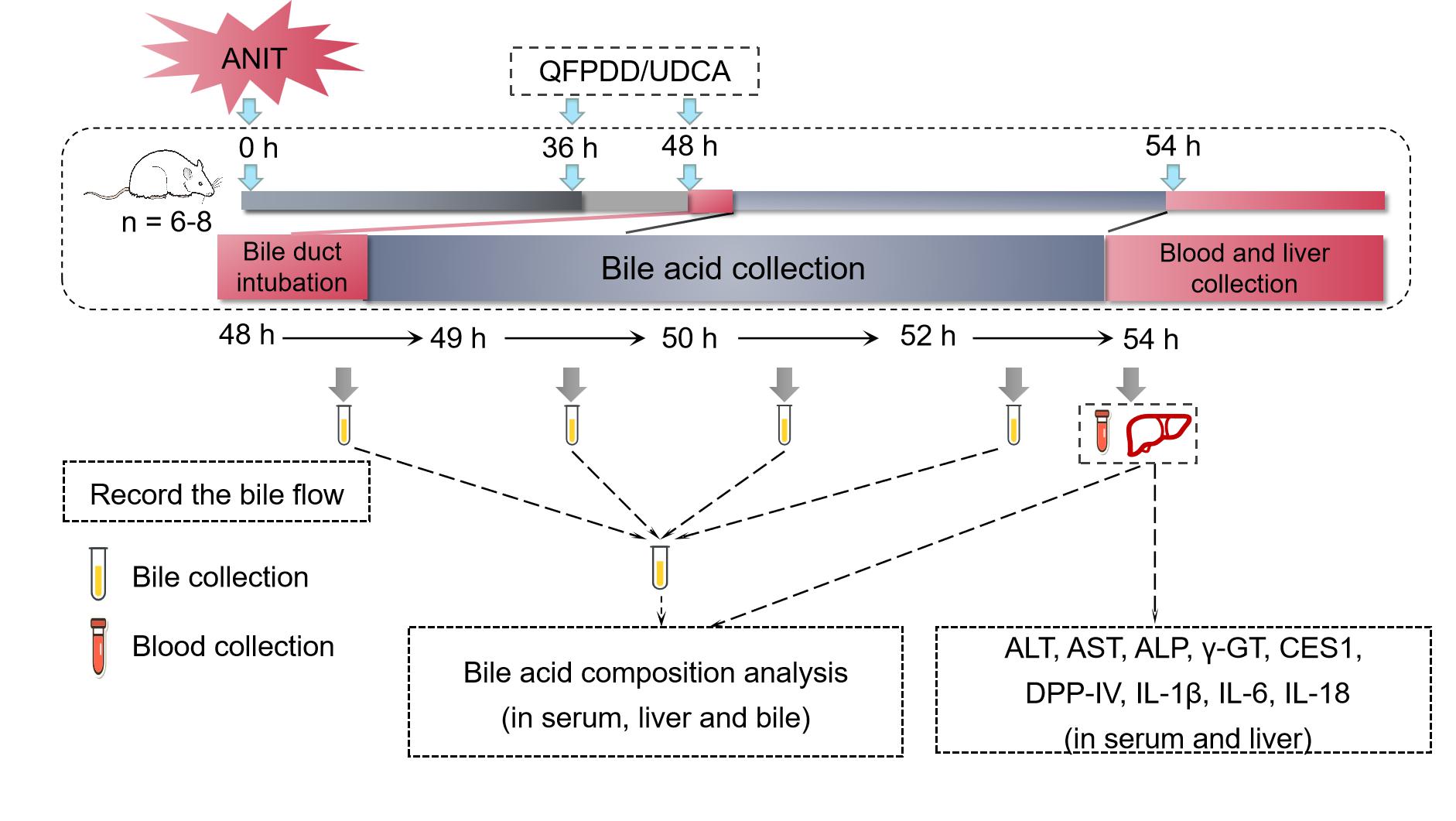 bat365中文官方网站系统药代动力学研究中心杨凌团队构建了生物标志物的自体追溯新方法。即组织损伤时,从该组织中泄漏至血液中标志物的增加必须与损伤对应组织中同标志物的减少保持一致,如假设在损伤过程中,该标志物不会因损伤所产生组织增殖效应而导致标志物的增加,从而排除因损伤过程中,因非损伤刺激所导致的损伤组织中标志物本身动态变化的干扰。基于上述原理,使用α-萘异硫氰酸酯(ANIT)这一肝脏胆管特异性损伤剂建立大鼠肝特异性损伤急性模型,其主要目的是为了排除多组织损伤后标志物在多组织中发生复杂变化的干扰;进而,该文作者将团队先前发现的新标志物与传统肝脏损伤标志物进行了比较,结果显示羧酸酯酶1(CES1)是肝内最稳定的损伤标志物,二肽基肽酶4(DPP-4)则是表征炎症产生的最敏感广谱标志物,而传统标志物如转氨酶均易受到非损伤刺激促其表达增加的干扰。