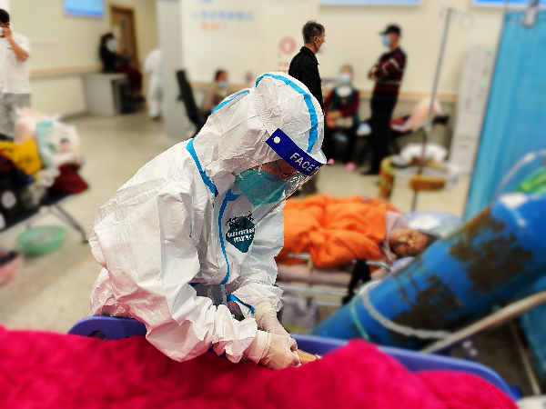 刚工作不久,就跟随医疗队先后支援方舱医院和定点医院,刘庄凤有了很多难忘的第一次。“第一次穿上防护服,有种奇妙的感觉,瞬间感到自己的肩膀上多了一份责任。”她告诉记者。和方舱不同,定点医院收治的患者病情更重,还有不少老年人。很多老人都是独自入院,没有家属陪伴。这时,刘庄凤还要帮他们喂饭、换尿布。“我还负责照顾需要定期做血透的患者,每天忙碌而又充实。”姑娘说。