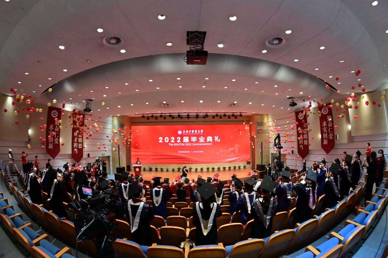 “阳光洒遍青翠的杏林,我们相聚在浦江之滨,努力弘扬中华的瑰宝,为人类托起浓浓的绿荫。”校歌声中,典礼迎来终章。