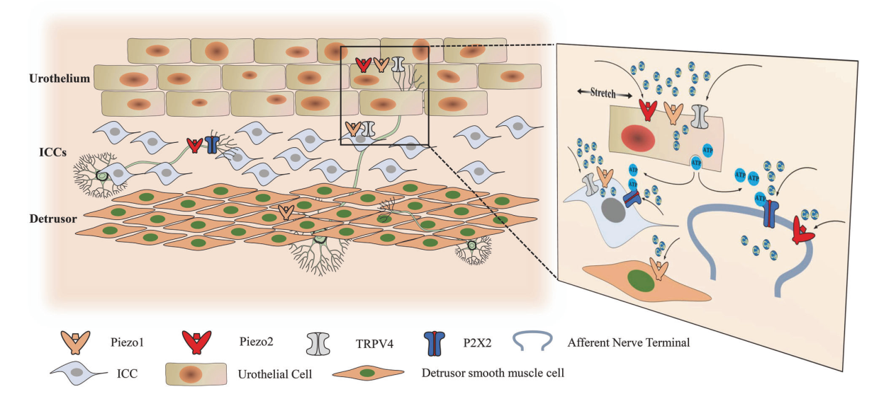 目前,对Piezo1和Piezo2结构—功能的见解已经获得了相当大的进步,它们各自对不同类型的机械刺激做出反应,并以不同的方式促进泌尿系统稳态。下尿路中Piezo通道蛋白的突变和破坏可能会引发包括癌症在内的疾病,但需要进一步地研究来充分了解它们的病理机制。