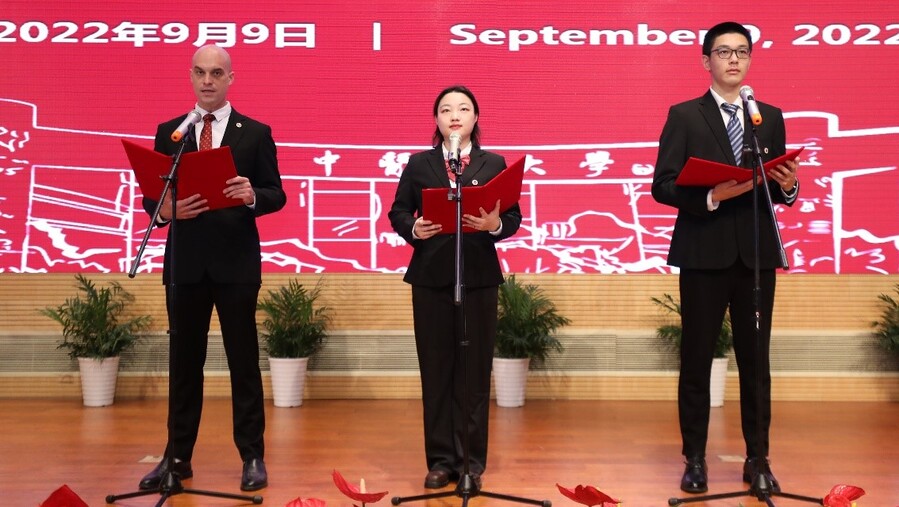 医学生入学,充满仪式感。在校党委书记曹锡康的领誓下,全体新生庄严宣誓:“作为一名医学生,从今天起,我愿把我的一生献给医药科学事业,救死扶伤,发扬人道主义,视患者胜同受难的父母亲友,勤奋仁爱、求实创新,勇于奉献、报效祖国……”校长季光寄语新生们守正创新,做不负时代的岐黄传人,他希望“00后”们打破各类“次元壁”,用现代科学解读中医药学内涵,寻找属于自己的“青蒿”。