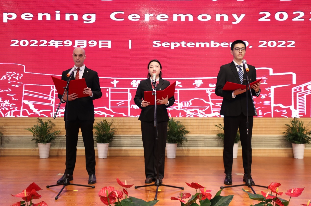 2022级本科生张兆毅,硕士研究生、国际学生(美国)周安,博士研究生孙漫沁作为新生代表在典礼上发言,表达了他们对中医药文化的热爱和传承发扬中医药事业的坚定信念。
