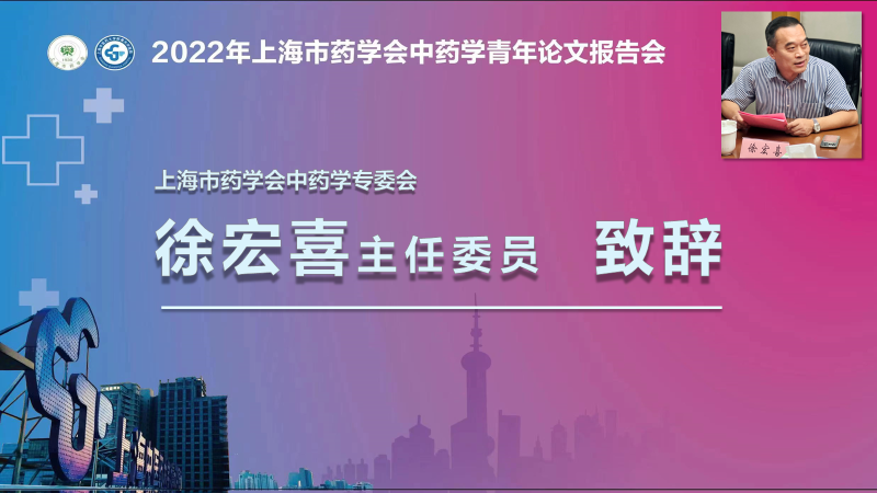 刘丙龙、徐宏喜为开幕式致辞,回顾了上海市药学会中药学青年论文报告会的历史沿革,展望新时代中药学发展的美好前景,对新一代青年学子寄予厚望。开幕式由上海市药学会中药专业委员会副主任委员黄宝康教授主持。