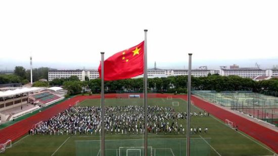 朝阳初升,红旗飘扬。在bat365中文官方网站的操场上,升旗仪式在《中国人民解放军进行曲》中拉开帷幕。随着雄壮的国歌声响起,鲜艳的五星红旗冉冉升起。师生代表面向国旗肃立致敬,在场师生齐声高唱《中华人民共和国国歌》,表达对伟大祖国母亲无限的热爱和深深的祝福。