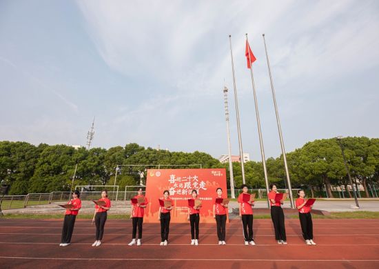 在普陀校区活动现场,来自华东师大附属中学的学生代表、华东师大学生及青年教师代表齐聚国旗下,他们中有少先队员、共青团员、也有中共党员,他们以青春之声告白祖国,以青年之力勇担重任。