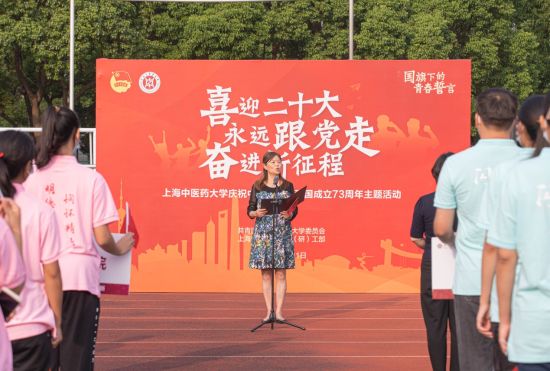 上海是党的诞生地、初心始发地,也是中国共青团的重要孕育地。二级学院学生工作负责人上台,在红色地图上贴上地标,开启各队伍的国庆红色地标打卡学习之行。他们也将在仪式结束后前往学校红色教育“岐黄育人实践基地”,感受红色精神,让红色基因融入血脉。学校党委副书记、副校长朱惠蓉在讲话中向到场的师生代表提出殷切期望:希望同学们用初心砥砺信仰,厚植爱国之情;用理论坚定信念,筑牢强国之志;用奋斗书写青春,实践报国之行。在时代的舞台上熠熠生辉,用青春的能动力和创造力激荡起民族复兴的澎湃春潮!