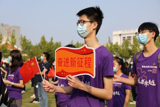 在师生齐唱《歌唱祖国》《我和我的祖国》的青春之声中,升旗仪式圆满结束。仪式后,闵行校区的师生们还举行了“一起奔向新征程·国庆逐梦健康跑”活动。
