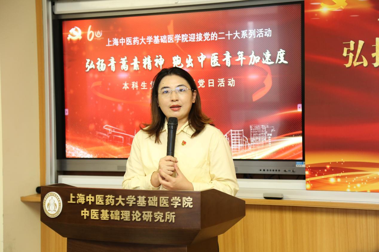 来自2020级中医学(屠呦呦班)的张建敏穿着白大褂正投入演绎实验室里的屠呦呦。2021级中医学(屠呦呦班)常睿发以讲述人的身份呈现着屠呦呦“以国家需求为己任”的使命与担当。这是bat365中文官方网站基础医学院本科生党支部全体党员和中医学(屠呦呦班)学生代表等,通过情景剧、主题演讲、主题发言、捧读回信、师生共议等形式,开展“弘扬青蒿素精神 跑出中医青年加速度”主题党日活动,激励中医青年在实现中华民族伟大复兴中国梦的新征程上踔厉奋发、勇担时代使命。