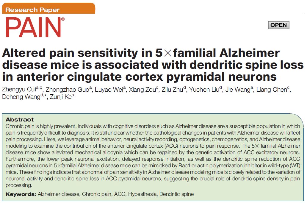 柯尊记教授和王德恒副研究员团队在PAIN发表阿尔茨海默病痛敏改变机制研究新进展