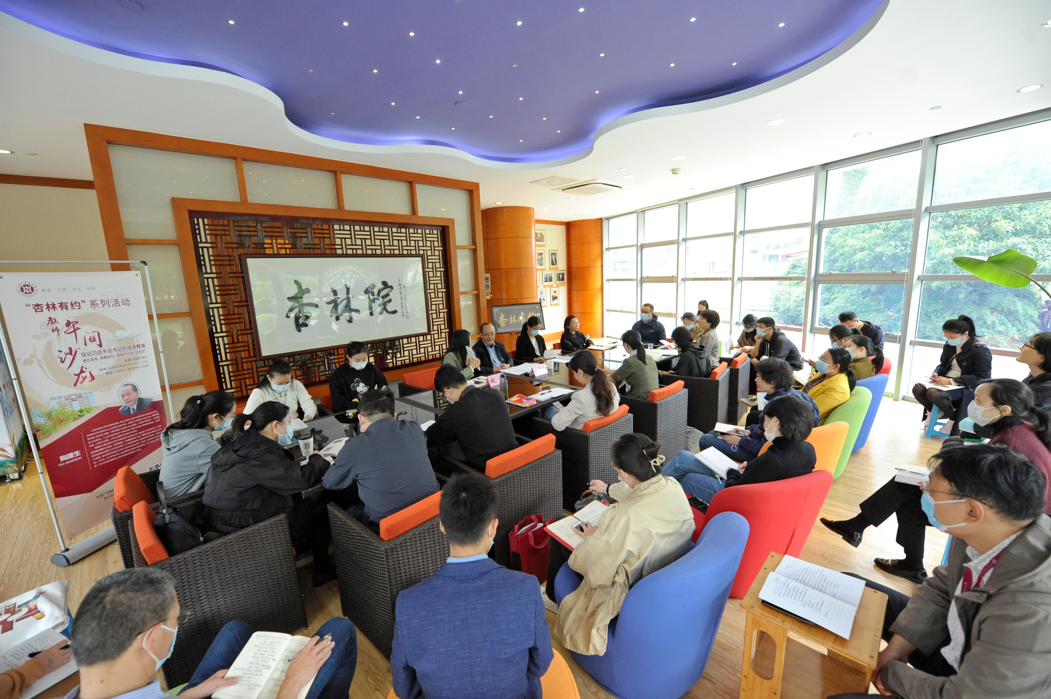 10月28日中午,第32期“杏林有约”教师午间沙龙活动在行政中心杏林院举行。本次沙龙特邀“阳光导师”陶建生教授与青年教师们作交流分享,主题为“铭记习近平总书记的谆谆教诲,踔厉奋发、勇毅前行,做新时代的‘大先生’”。活动由校宣传部(党委教师工作部)副部长刘虹主持,青年教师班主任、教师党支部书记等30多名教师参加。
