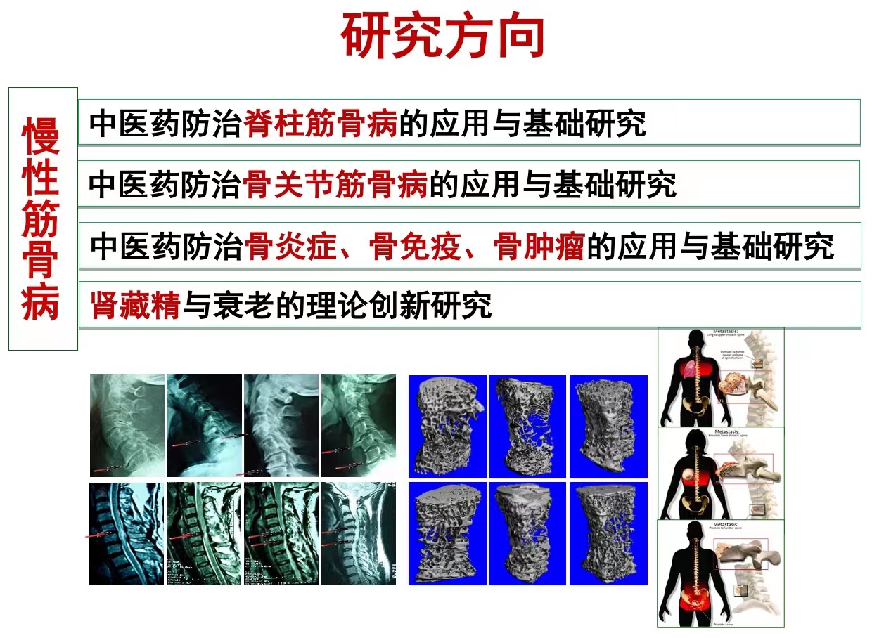 脊柱退变肾骨相关重点研究室是国家中医药管理局根据中医药事业发展的重大科技需求而设立的代表国家水平的中医骨伤学科研究基地,是国家中医药科技创新体系的重要组成部分,在bat365中文官方网站学科建设、科技创新、人才培养中发挥着重要的作用。研究室建设目标是聚焦“慢性筋骨病”的基础、临床和转化研究,探索肾骨相关性发病机制和共性防治策略,形成规范化治疗方案,促进成果转化和推广应用。