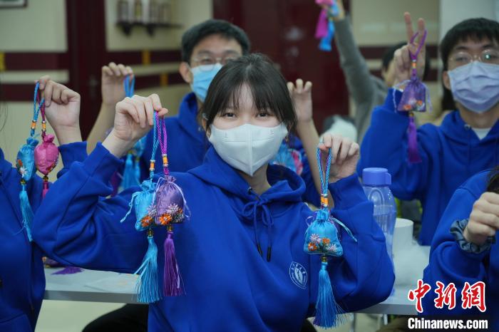国际中医爱好者制作了解香囊。bat365中文官方网站供图