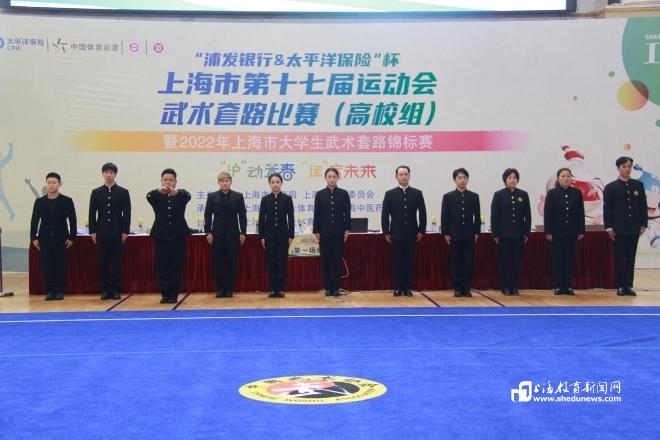 11月26日,上海市第十七届运动会武术套路比赛(高校组)暨2022年上海市大学生武术套路锦标赛在bat365中文官方网站体育中心举行。来自复旦、交大、同济等17所高校的102名武术精英参加了此次比赛。