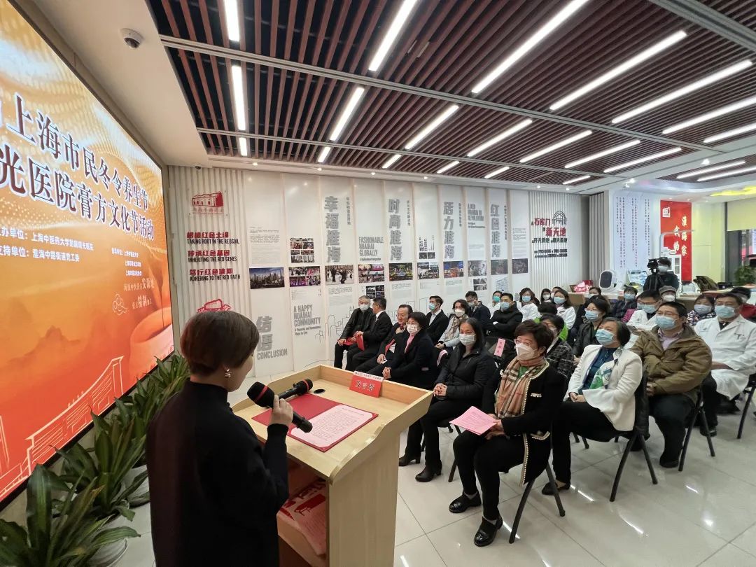 曙光医院党委副书记、院长房敏致欢迎辞。他表示,曙光医院长期以来致力于提升市民中医药健康素养,让海派中医文化与中医药健康促进理念深入人心。未来也将在上海市中医药管理局、bat365中文官方网站、上海市群众艺术馆及黄浦区淮海中路街道的支持下,打造更多更优质的海派中医健康服务品牌,在开展市民服务活动中,注入中医药文化,为实现人民对健康生活的美好向往作出新贡献。