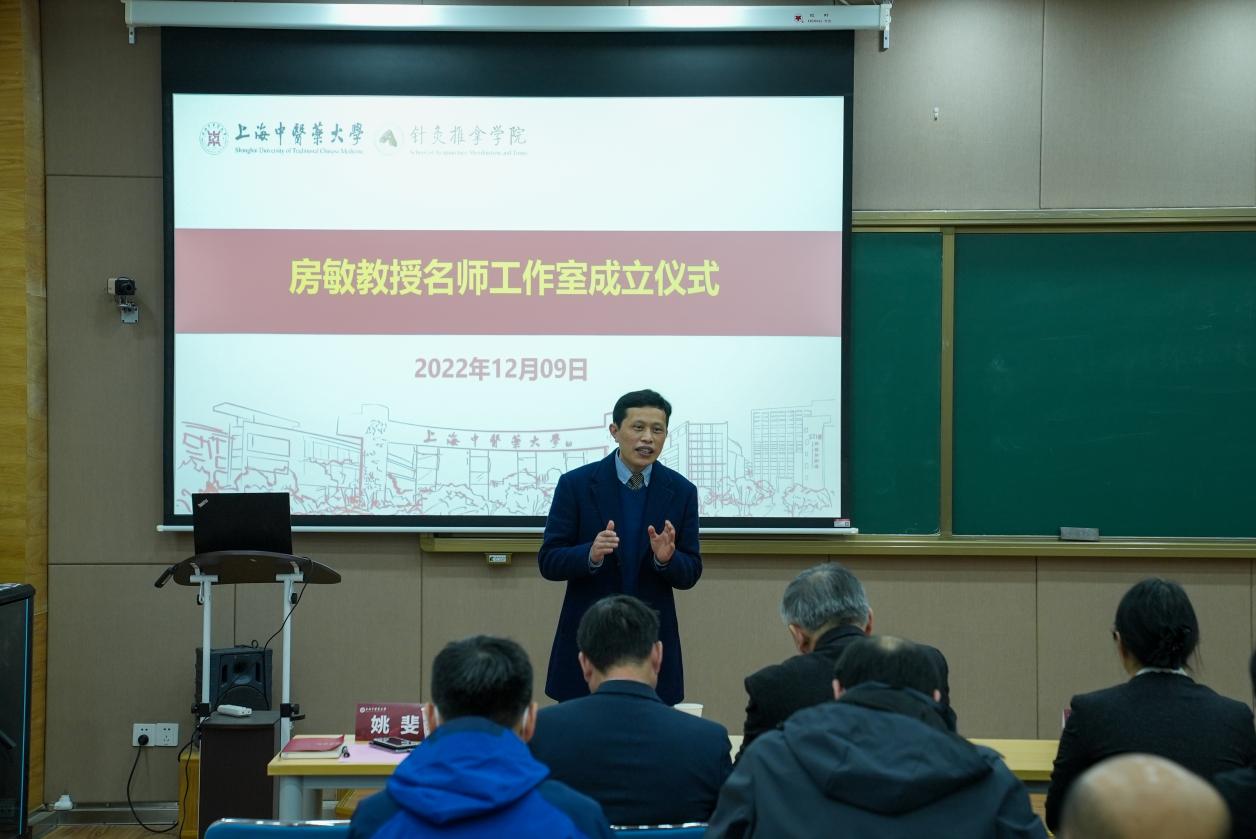 房敏表示,中医推拿作为传统中医药宝库中富有特色的瑰宝,在新时代、中医药传承创新发展的新征程中,如何彰显中医推拿的独特魅力,学科团队建设至关重要。名师工作室的建立是值得探索的,工作室成员由学校各二级单位和附属医院学科成员组成,工作室将紧紧围绕学术传承、临床诊疗,科研创新等核心内容,以人才培养为第一要务,打破学院和医院之间的壁垒,整合优化,共建共享本学科教学成果、名师课程、规划教材、教育资源,培养学科新一代领军人才和骨干,致力于突破学科发展关键科学问题,对接“健康中国”战略,勇于担当学科发展使命。同时,他希望工作室成员只争朝夕、不负韶华,以个人的高质量成长发展促进学科的高质量发展,保持本学科在全国的专业引领示范作用,做到“我为工作室贡献,学科以工作室为标杆”。