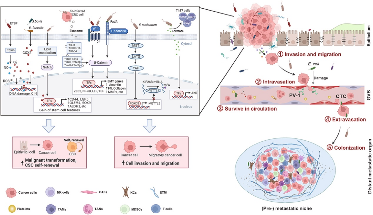 中西医结合研究院赵玲团队发文阐述肠道菌群在结直肠癌转移过程的作用及机制