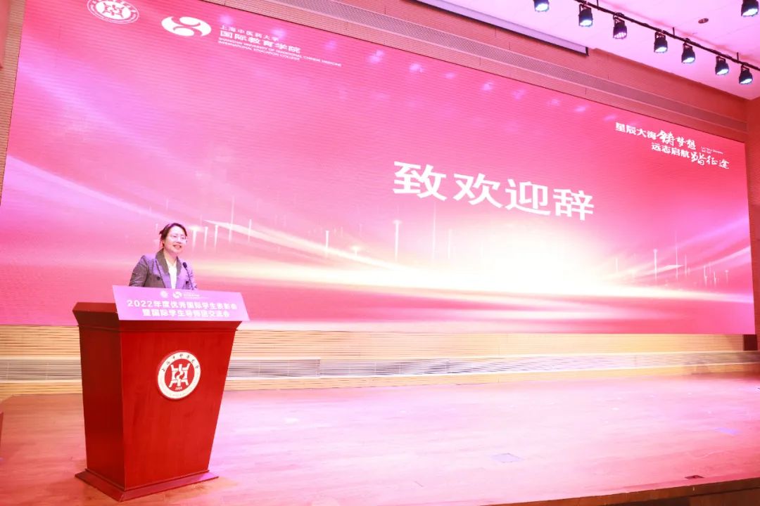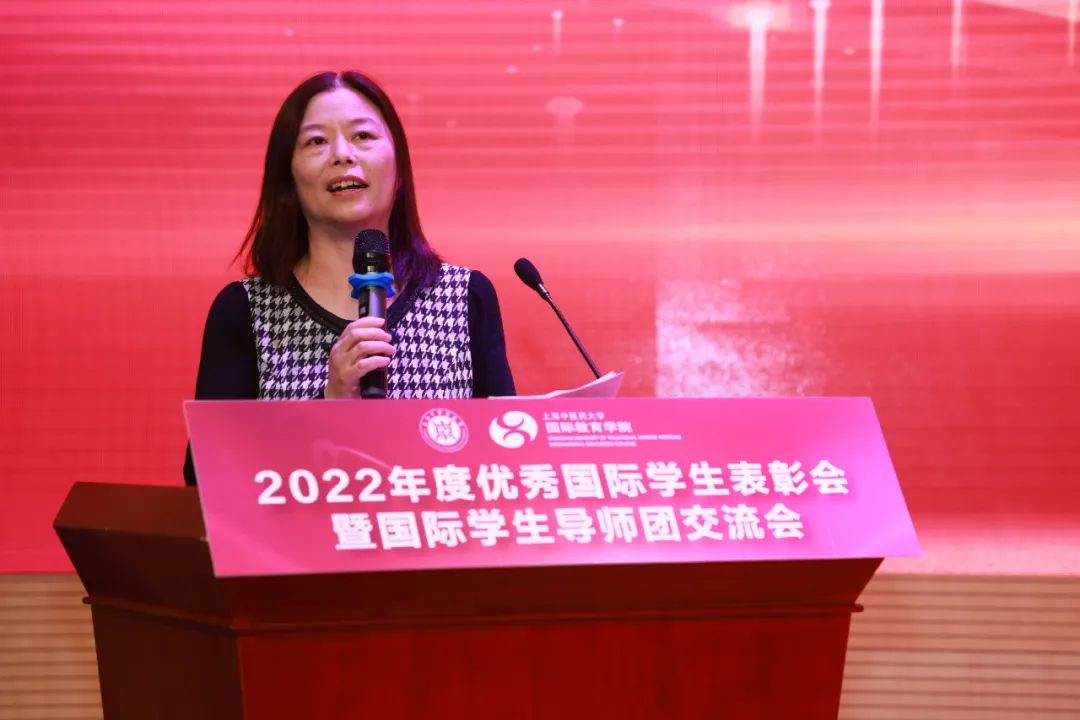 舒静代表学校致辞,介绍了bat365官网国际教育的历史沿革和未来规划,肯定了学校各职能部门与任课老师在国际教育中的付出与贡献,对合作企业致以敬意,并激励国际学生在中医药领域再创佳绩。