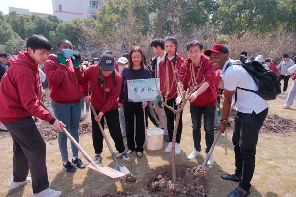 同植一片林,共启杏园春。本次植树节暨劳动教育活动不仅在张江校区落地生根,也在学校惠南校区开展。康复医学院师生共携手、齐劳作,挥锹培土,扶苗浇水,耕植一方绿荫。