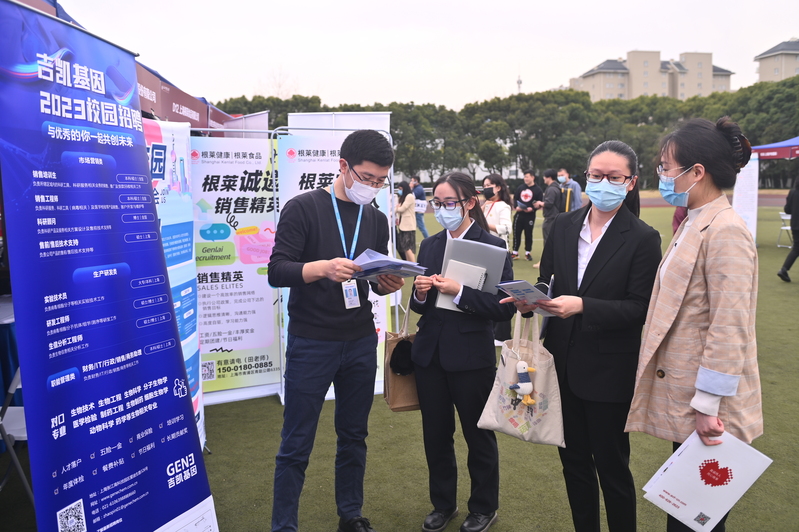 在学校体育场举行的招聘会上,上中医校长季光等现场见证了9名毕业生与4家用人单位签署就业协议。签约学生来自中药学院、公共健康学院、康复医学院、中药研究所,分别与上海和黄药业有限公司、宝山区疾病预防控制中心、上海市第二康复医院、上海新起点康复医院签约。而其中,宝山区疾病预防控制中心就占了签约人数的三分之一,一下子签下3人,其中包括可以直接落户上海的研究生。