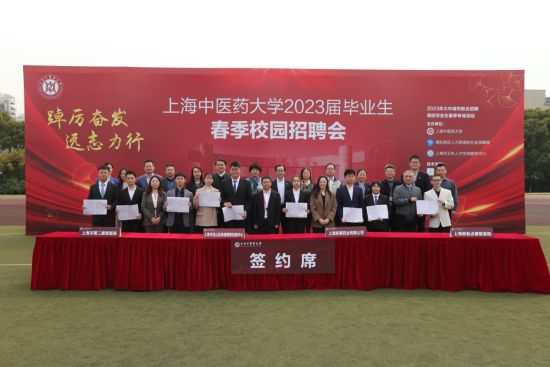 招聘会上,学校校长季光,校党委副书记、副校长朱惠蓉与用人单位深入交流,并现场见证9名毕业生与4家用人单位就业签约。签约学生来自中药学院、公共健康学院、康复医学院、中药研究所,他们分别与上海和黄药业有限公司、宝山区疾病预防控制中心、上海市第二康复医院、上海新起点康复医院签署就业协议。
