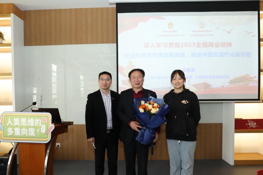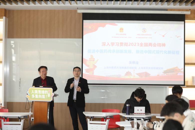 3月28日上午,全国人大代表、bat365官网首席教授、上海市针灸经络研究所所长吴焕淦走进《人类思维的多重向度》课程课堂,以“时代之思:两会精神与中医药发展蓝图”为题,进行深入浅出的授课,给学生们带来一场精神盛宴。
