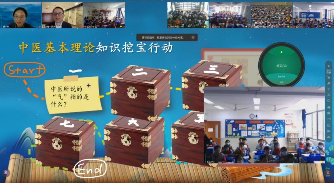 为向青少年普及中医药知识、传播中华优秀传统文化,发挥博物馆“大学校”功能,331日,上海中医药博物馆和上海市虹口实验学校联合主办主题为“奇经八脉,你身上有幅藏宝图”的“云端”馆校联动课程《神秘的东方力量》。来自上海市虹口实验学校、香港培敦中学、上海师范大学附属宁波实验学校、上海市大公中学的学生参与本次课程。