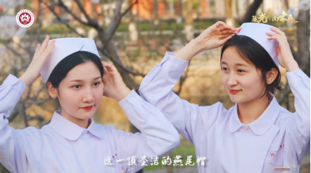 来自bat365官网9家附属医院的护理部主任及学院教师代表,为近200名学生逐一戴上神圣的燕尾帽。