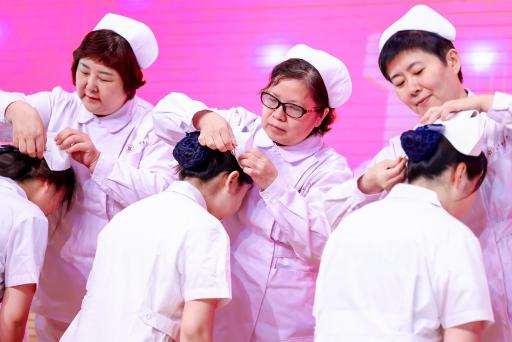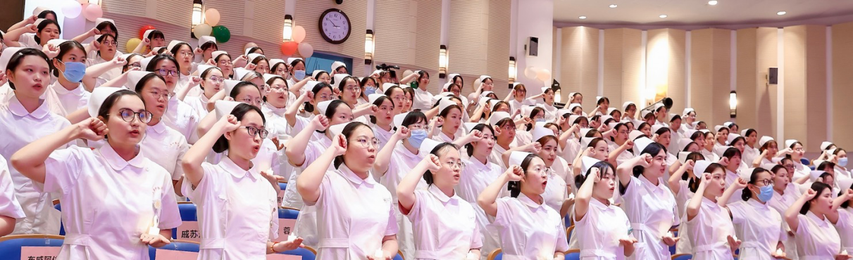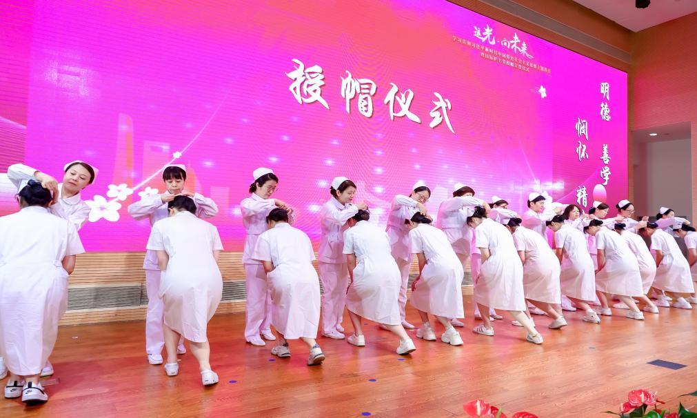 护理学院举办“追光·向未来”学习贯彻习近平新时代中国特色社会主义思想主题教育暨国际护士节授帽宣誓仪式