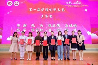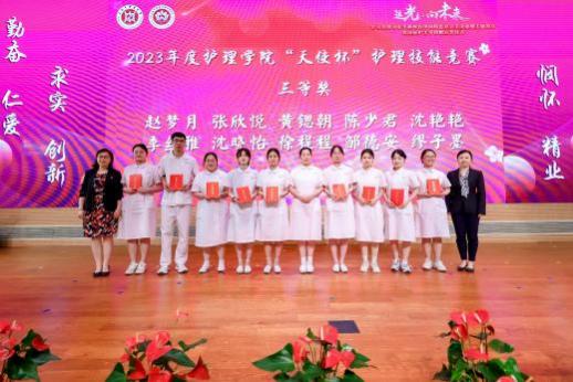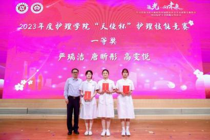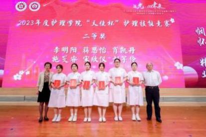 与会嘉宾为获得2023年护理学院“天使杯”护理技能大赛和bat365中文官方网站第一届护理创新大赛获奖师生颁奖。