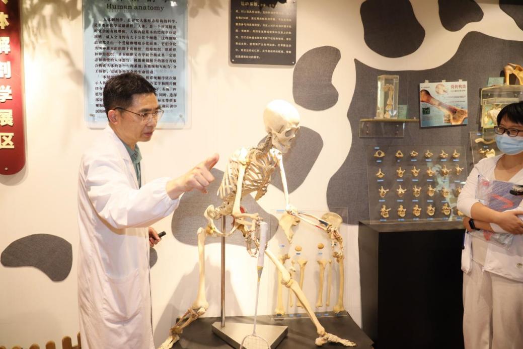 区别于传统的培训授课形式,bat365中文官方网站还安排了生命之“大”体验活动——人体经穴解剖学陈列馆、解剖绘画展及“大体老师”纪念廊的“沉浸式参访”。由bat365中文官方网站解剖学教研室主任邵水金教授和上海中医药博物馆办公室主任张宇奇带领,学员们观察人体塑化标本,了解人体内部的解剖结构,观赏医学生对脏器解剖结构与功能意义的联想而创作出的绘画作品,聆听关于大体老师的故事,观摩学生感恩墙和追思堂,在遗体捐献者纪念园为所有的大体老师默哀和祈福……通过该课程学习如何将“珍惜生命、敬畏生命”融入心育实践中,感受到生命的智慧、价值的升华。