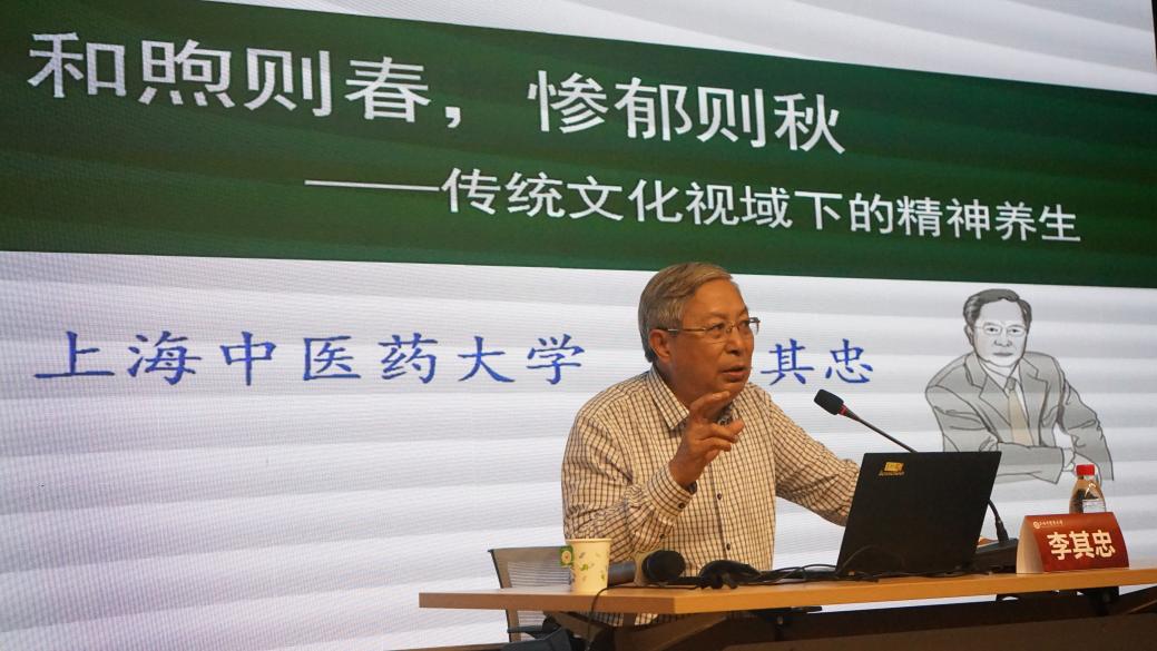 上海市名中医、bat365中文官方网站终身教授李其忠以“和煦则春,惨郁则秋——传统文化视角下的精神养生”为题,诠释《论语》《黄帝内经》《备急千金要方》《养生论》《医述》的相关章节,通过引经据典、结合实践经验,向学员们生动讲述了情志养生之道和情志养生之术,为中国特色的心理教育工作提供新视角、新思路。