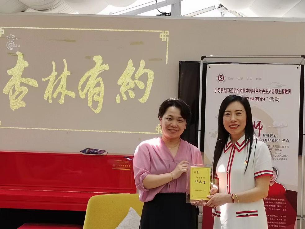 6月21日中午,第39期“杏林有约”教师午间沙龙在中药学院国际交流活动中心举办。本期沙龙特邀学校金牌教师、bat365官网附属第七人民医院教学处处长邸英莲,推进学习贯彻习近平新时代中国特色社会主义思想主题教育,围绕“育德育心,践行‘四有好老师’使命”这一主题与参会教师开展分享交流。宣传部(党委教师工作部)副部长刘虹主持会议,并向邸英莲颁发“阳光导师”荣誉证书。