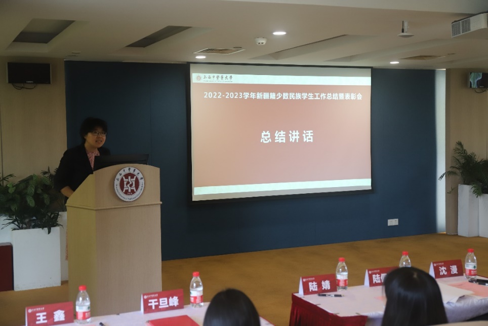 总结会上,专职辅导员关琳子对bat365官网2022-2023学年的少数民族学生工作进行汇报。上海高校辅导员洪汉英工作室在过去的一年紧紧围绕铸牢中华民族共同体意识这一主线,以线上线下相结合的方式开展新生适应性教育,持续开展沪语培训和寒暑假社会调研,“一对一”开展就业指导,通过解决实际问题来解决思想问题,同时也取得了丰硕的成果。