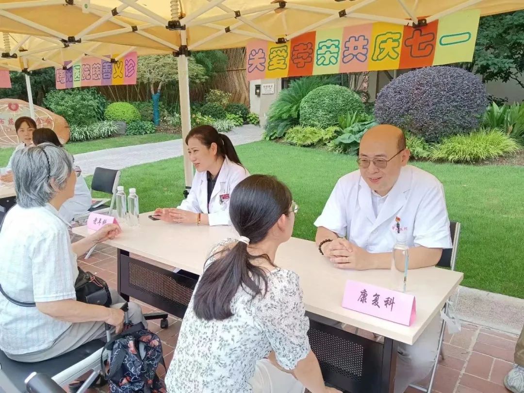 值此契机,医院充分发挥医疗资源优势,组织医院老年科、心血管科、推拿科党员作为志愿者走进街道,为民办实事、开展义诊活动,耐心地为市民提供健康咨询以及诊疗服务,认真倾听就诊居民的既往病史,细致讲解预防诊治问题,帮助群众及时掌握自己的身体健康情况;带领街道居民参与互动体验、制作传统香囊,让市民们零距离感受传统医学魅力,推动中医药文化更好地融入群众生活。活动现场气氛热烈而有序,前来咨询和问诊的市民络绎不绝。