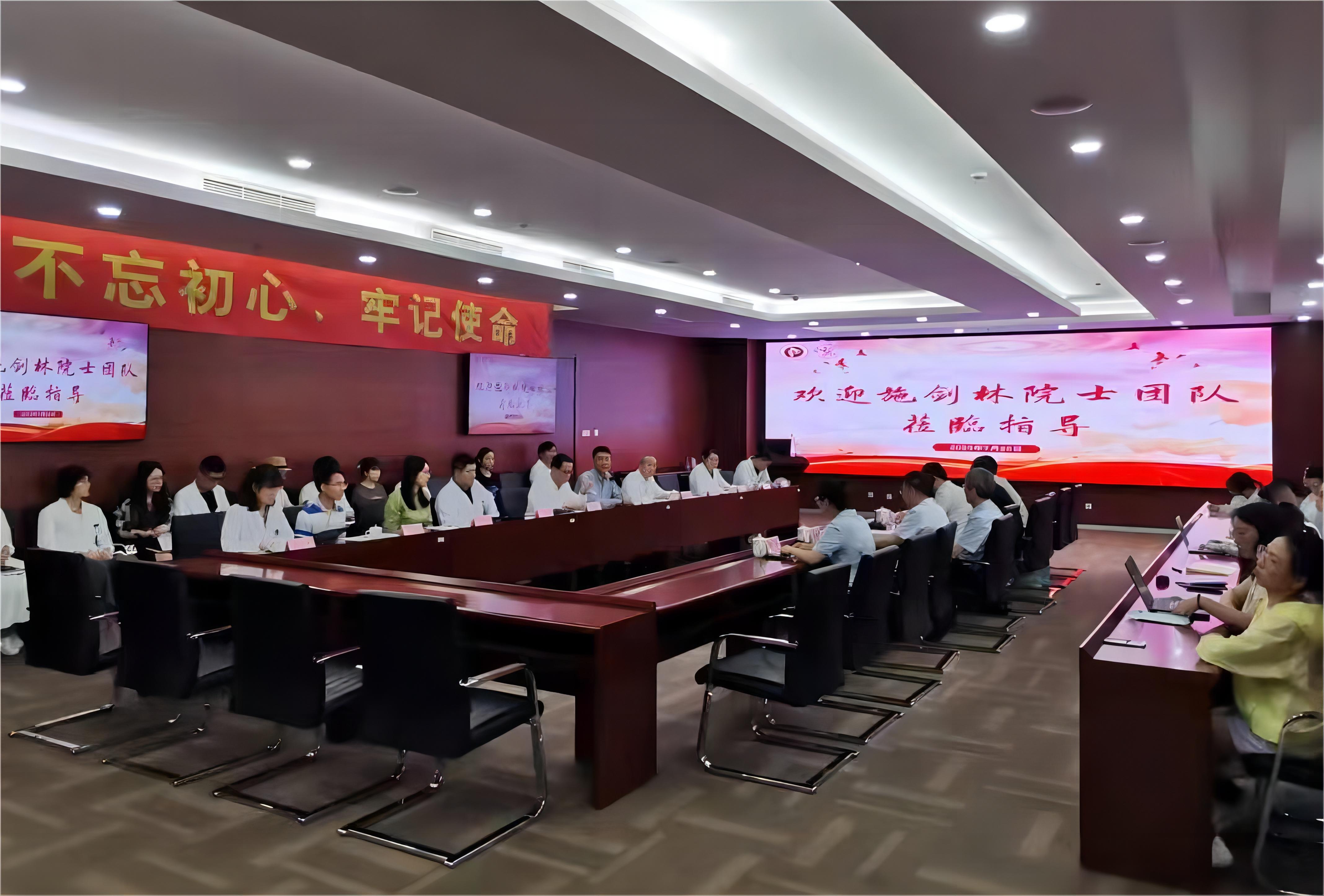 7月25日下午,应bat365官网校长季光邀请,中国科学院上海硅酸盐研究所施剑林院士携研究团队到龙华医院开展学术交流,硅酸盐研究所党委副书记杨建华、科技综合处处长刘军,龙华医院副院长郑培永、脾胃病研究所副所长徐汉辰、胃肠外科主任医师许阳贤,岳阳中西医结合医院肿瘤科主任龚亚斌、曙光医院肿瘤科执行主任王炎等40余人参加交流。徐汉辰主持研讨交流。