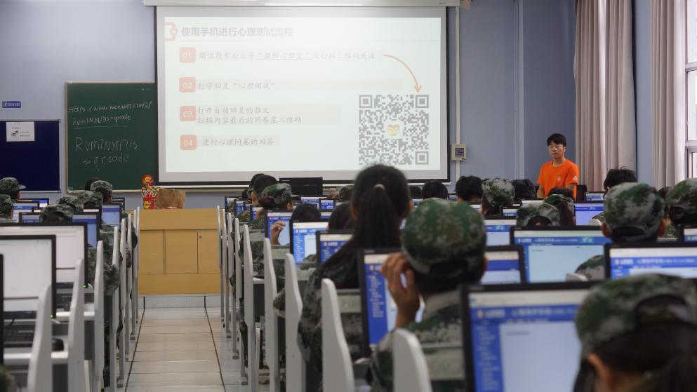 测试工作由学工部统一组织落实,信息化办公室等相关职能部门和各二级学院协同保障。学生组织“橙意暖心朋辈辅导联盟”带领心理志愿者参加测前主试培训,解决新生登录、答题或提交问卷过程中出现的相关问题,保证流程规范有序、结果科学有效。