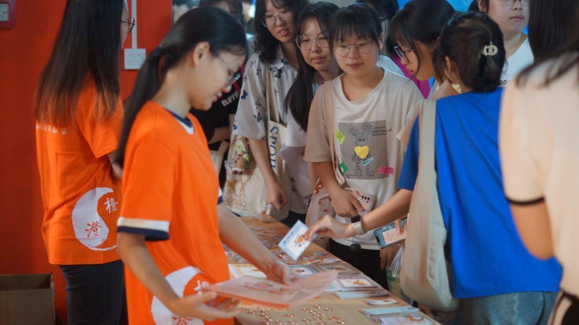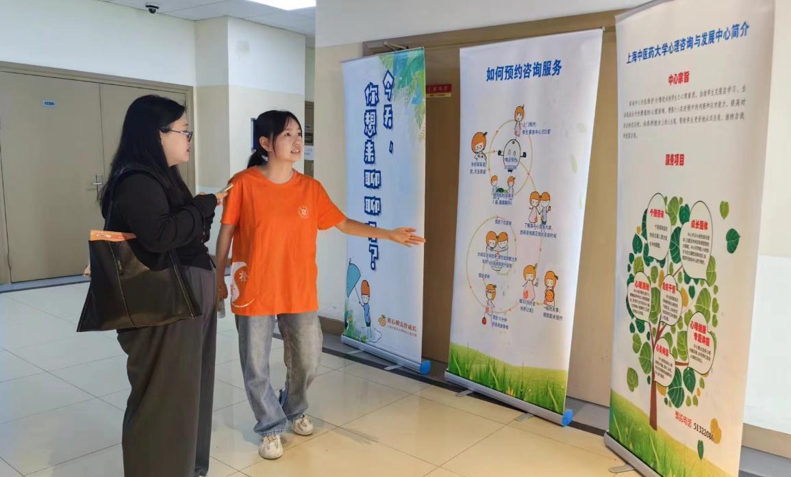 为加强心理健康知识科普,志愿者们在心理测试等候区还准备了包括“心理咨询与发展中心介绍”、“零距离接触心理咨询”、“心理咨询流程”易拉宝、“常见心理问题识别”宣传彩页、上中医特制心理明信片、情绪贴纸、橙宝文件夹等丰富有趣的宣传品。橙色着装的志愿者们耐心为新生提供科普讲解和引导,彰显心理朋辈力量。