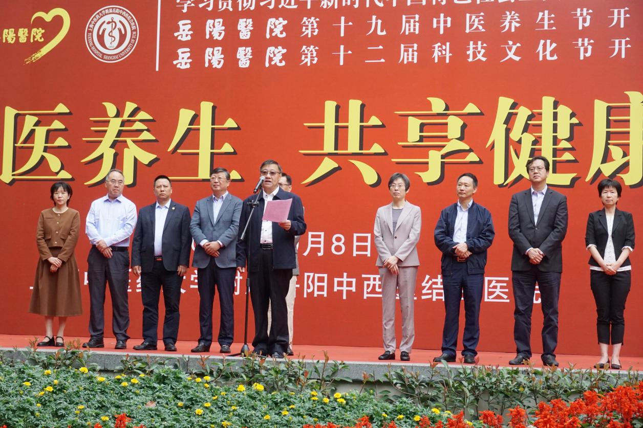 周斌肯定了岳阳中西医结合医院始终坚持全面推进一体化的中医药服务体系建设,通过中医养生节传承和弘扬祖国传统医学,把更多科学有效的养生之道介绍给市民百姓。他代表大学表示将一如既往支持岳阳中西医结合医院的中医药服务工作,努力为全市人民提供全生命周期的卫生与健康服务。