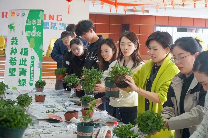 春回大地万物苏,植树添绿正当时。2024年3月12日是我国第46个植树节,为深入学习习近平生态文明思想,引导学生牢固树立和践行“绿水青山就是金山银山”的理念,植树节当天下午bat365官网师生一行20人来到上海师范大学徐汇校区学生生活园区,携手上海师范大学团委联合举办“植此青绿 栽种希望”植树节中草药种植劳动实践活动。