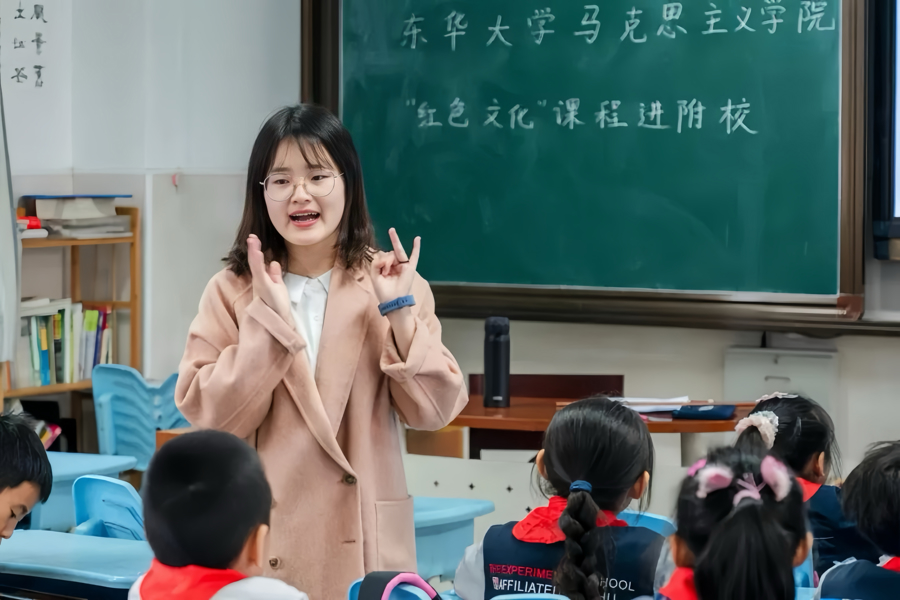 思政课不一定在教室坐着听,大中小学生也不一定不同堂。这周末,在习近平总书记首提“绿水青山就是金山银山”的小山村——浙江省安吉县余村,两地学生大手牵小手。“与村民同吃同住,谈家常、话家事,还开展晨读夜谈、撰写日记、结业展示等活动,新鲜又接地气。”东华大学环境科学与工程学院硕士新生王佶婧和小伙伴走访污水处理厂实地采样,并提供可行方案。服装与艺术设计学院博士新生胥德连等也带领安吉县天荒坪镇中心小学小朋友为家乡设计IP,将自己眼中的安吉画出来,“通过艺术设计再加工,推进当地土特产包装、文创产品等项目落地,助力美丽乡村建设。”
