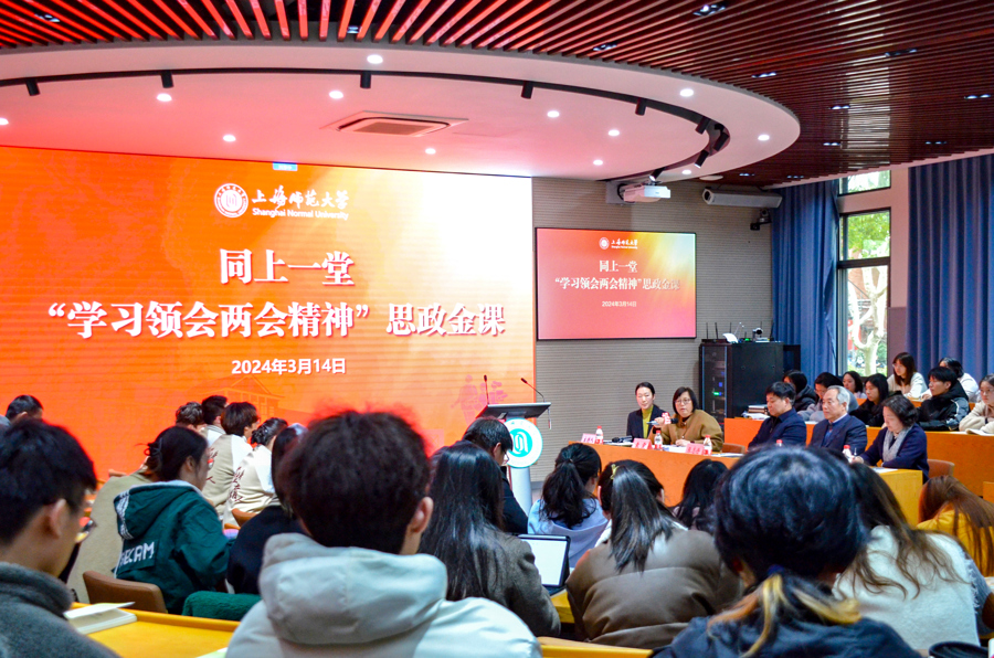 “从新能源汽车产销量占全球比重超过60%,到粮食产量1.39万亿斤再创历史新高,同学提到这些今年政府工作报告里的数据,都是在‘两会’上赢得全场掌声的数据。”作为全国政协委员,上海师大校长袁雯等教授走进这个新学期的思政课堂。袁雯不仅援引国家发展和改革委对热词“新质生产力”的诠释,还贴心告诉这些未来教师,预计今年高校毕业生超过1170万人,占城镇新增就业人口一个“大头”,为此政府工作报告特别提出:加强高校毕业生等重点群体就业促进服务。