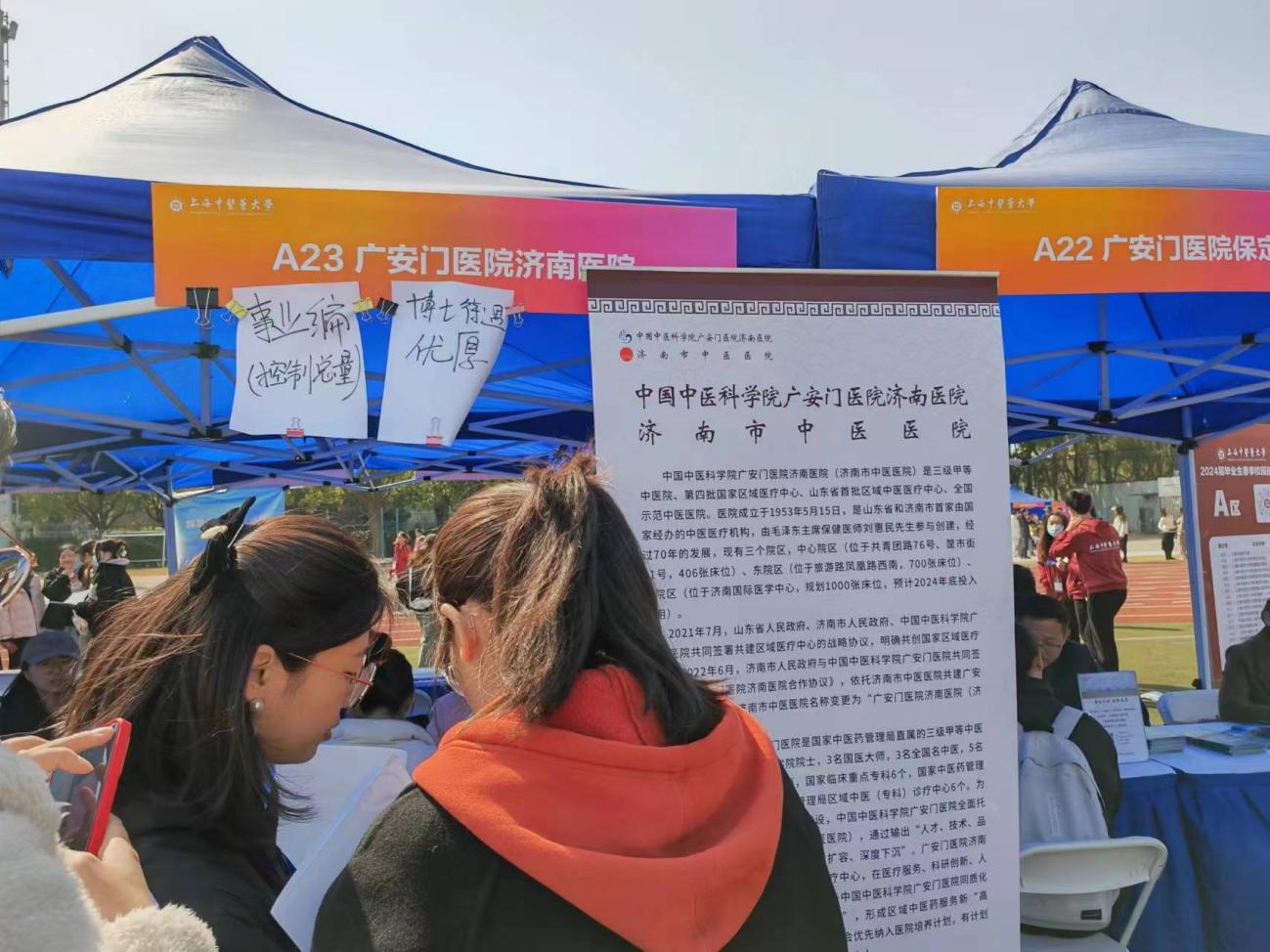 在现场摆摊的用人单位中,一些外省市大医院可谓“大张旗鼓”做足宣传攻势。记者注意到,像河北省中医院、中国中医科学院广安门医院、浙江省中医院、湖北省中医院、深圳市中西医结合医院等均在现场发出“招募令”。“博士生到我们这儿来,大概各种补贴能拿到40多万。”济南市中医医院在现场临时挂出了“事业编”和“博士待遇优厚”的广告,其招聘负责人告诉记者,市一级对博士生补贴15万购房款和每个月1500元生活补助,医院一级还有另外的补贴,入职后正常薪资根据事业单位规定执行。记者发现,此类收入待遇稳定、发展前景看好的外省市用人单位,很受应届生欢迎,几乎每个摊位前都有不少学生排队投简历。